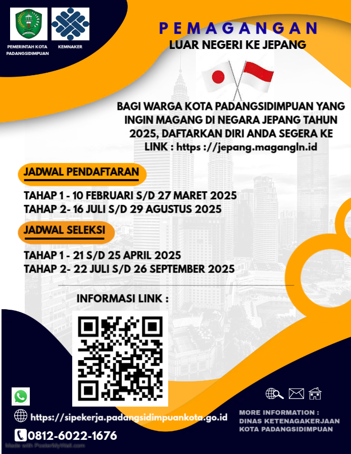 *Pelaksanaan Seleksi Pemagangan Luar Negeri ke Jepang di Provinsi Sumatera Utara* _*Gelombong I (21 s/d 25 April 2025)*_ dan _*Gelombang II (22 s/d 26 September 2025)*_.